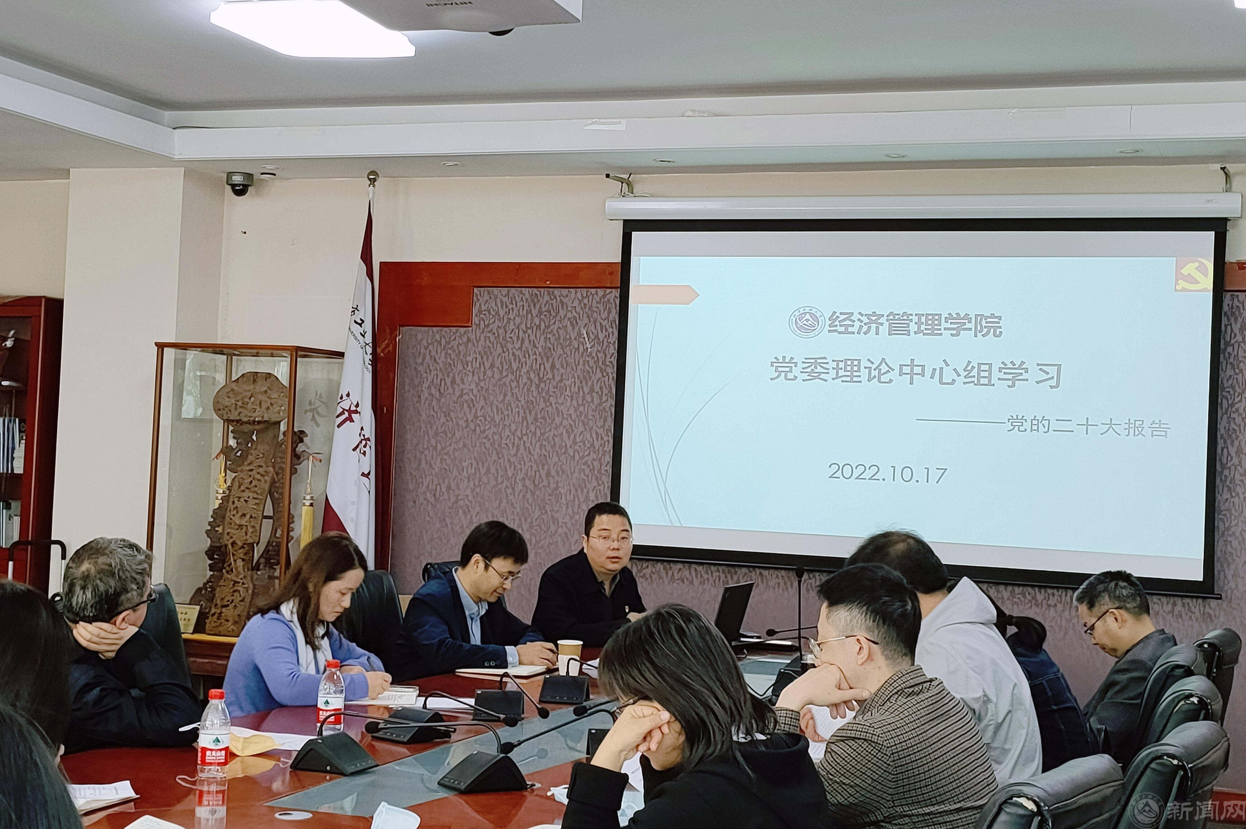 10月17日上午,经济管理学院党委理论学习中心组召开扩大会,专题学习党的二十大报告。学院党委书记王伟宾主持会议并进行领学。学校巡察办主任陈勇钢列席会议。学院党委理论学习中心组成员和党支部书记参加会议。