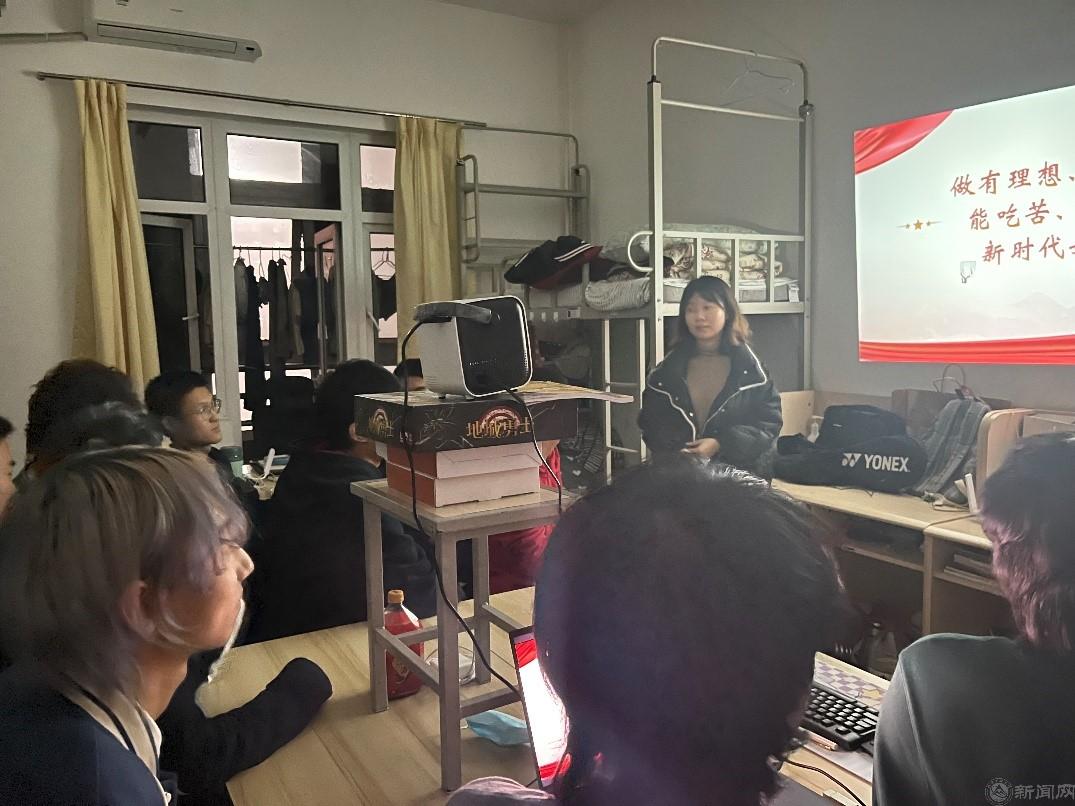 通过微党课的形式将党的二十大精神带到学生宿舍,破除了宣传贯彻工作的“最后一公里”障碍,把“冒着热气”最新精神带到学生中间,与学生的理想信仰、专业学习、成长成长紧密结合。2022级新生辅导员杨和家、田庆玥及兼职辅导员程海霞组成宣讲小组,认真学习党的二十大精神,提前筹备,认真备课,深入德斋307、馨斋953、慧斋321等新生宿舍小群,宣讲党的二十大报告和习近平总书记对青年的寄语等方面的内容。与学生共读《习近平的七年知青岁月》,从青春奋斗故事中明白坚定理想信念是新时代青年的立身之本、立志之根;和学生一起重温习近平总书记《给北京大学援鄂医疗队全体“90”后党员的回信》,让新生明白敢担当、能吃苦是新时代青年的核心内涵,虽然不能奔赴抗疫一线,但仍需要思考自己作为新时代信息技术专业的青年大学生应该“如何发挥先锋模范作用”“如何才能真正向党靠拢”“如何才能成为新时代新型人才”。