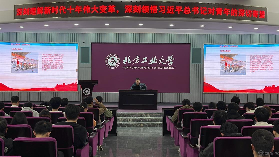 王磊从新时代的大背景出发,深入浅出地为同学们讲解了新时代的重大变革和习近平总书记对青年的殷切期望。他讲到,当前,中国正处于全面建设社会主义现代化强国的关键时期,新时代青年是国家的未来、民族的希望,肩负着实现中华民族伟大复兴的历史使命。他鼓励同学们要有不畏困难、艰苦奋斗的精神,以党的二十大精神为指导,扎实学习专业知识,不断提高思想道德素质,努力成为有理想、敢担当、能吃苦、肯奋斗的新时代好青年。