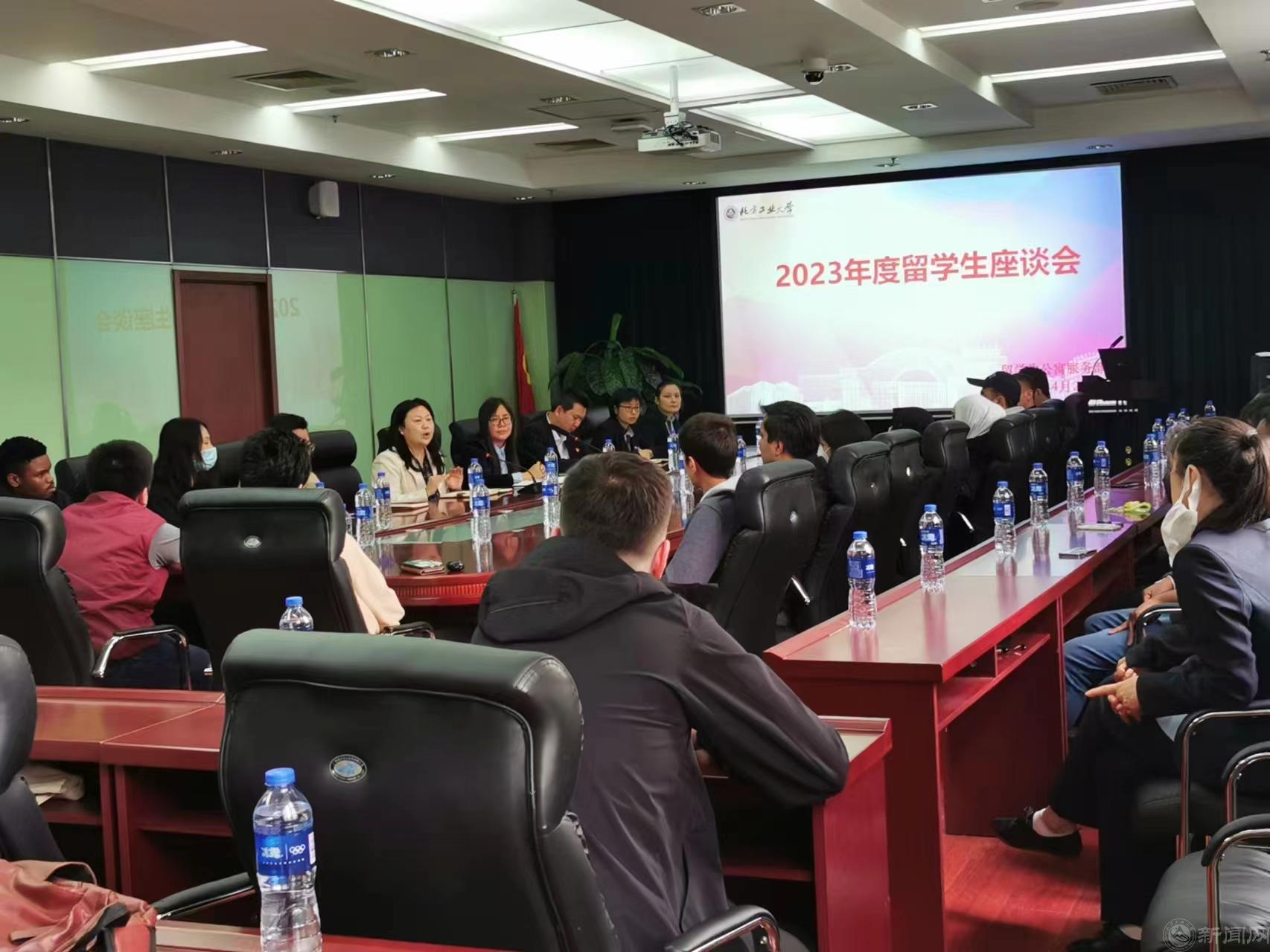 4月27日下午,服务中心和国际学院联合召开留学生代表座谈会,来自蒙古、刚果、乌兹别克斯坦等国在校内住宿的留学生代表50余人参加。