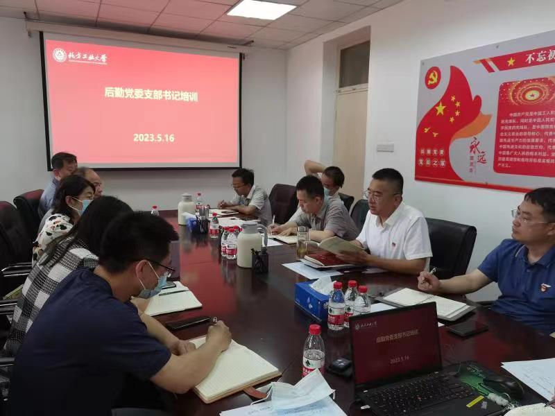 为深入学习贯彻党的二十大精神,扎实开展学习贯彻习近平新时代中国特色社会主义思想主题教育,进一步推进后勤基层党支部工作标准化、规范化建设,5月16日,后勤党委在一公寓114会议室召开党支部书记培训会。后勤党委委员、处级领导干部、党支部书记和党务秘书参加培训。培训会由后勤党委书记郑泰平主持。