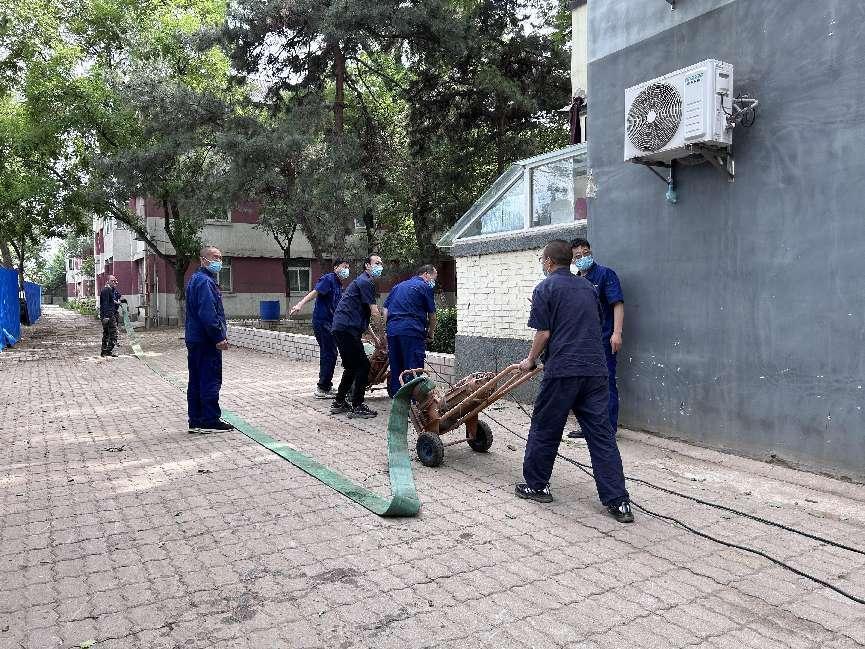演练活动现场模拟了受暴雨影响,家属10号楼东侧出现积水入楼情况,工作人员立即启动应急预案。演练设置了发现险情、启动防汛应急预案、发出应急处置指令和应急处置等环节。部门成立防汛领导小组、整个抢险在领导小组统一指挥下科学分工、明确各职能小组的职责和任务。预警组负责险情预判并立即报告、现场秩序维护。物资保障组负责物资运输及对家属10楼各单元门进行封堵。抢险突击组负责架设临时水泵、接电进行紧急排水。
