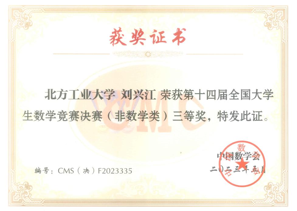 5月26日至28日,第十四届全国大学生数学竞赛决赛在广东工业大学举行。伟德官网电气与控制工程学院刘兴江同学作为北京赛区参赛代表之一参加了此次竞赛,并最终取得了非数学类全国三等奖的优异成绩。这是自全国大学生数学竞赛举办以来伟德官网学生首次入围决赛并成功获奖。