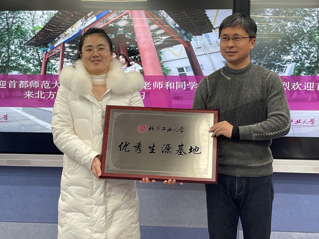 参观结束后,举行了优秀生源基地授牌仪式。招生就业处副处长王宏波代表学校授予首都师范大学附属丽泽中学为“BV伟德官方网站优质生源基地”牌匾。