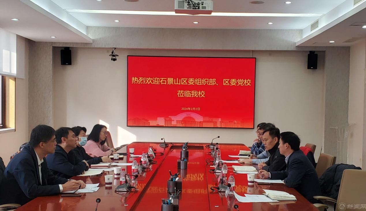 为贯彻落实《干部教育培训工作条例》和《全国干部教育培训规划(2023-2027年)》精神,进一步加强区校干部教育培训的交流与合作,2月2日上午,石景山区委组织部副部长、区公务员局局长陈鹏,石景山区委党校(行政学院)副校(院)长赵瑜一行4人来伟德官网交流调研。学校党委常委、组织部部长兼统战部部长何裕,建筑与艺术学院党委书记、继续教育学院院长兼培训中心主任熊佳全,马克思主义学院党委书记张茂林,及相关工作负责人参加座谈。