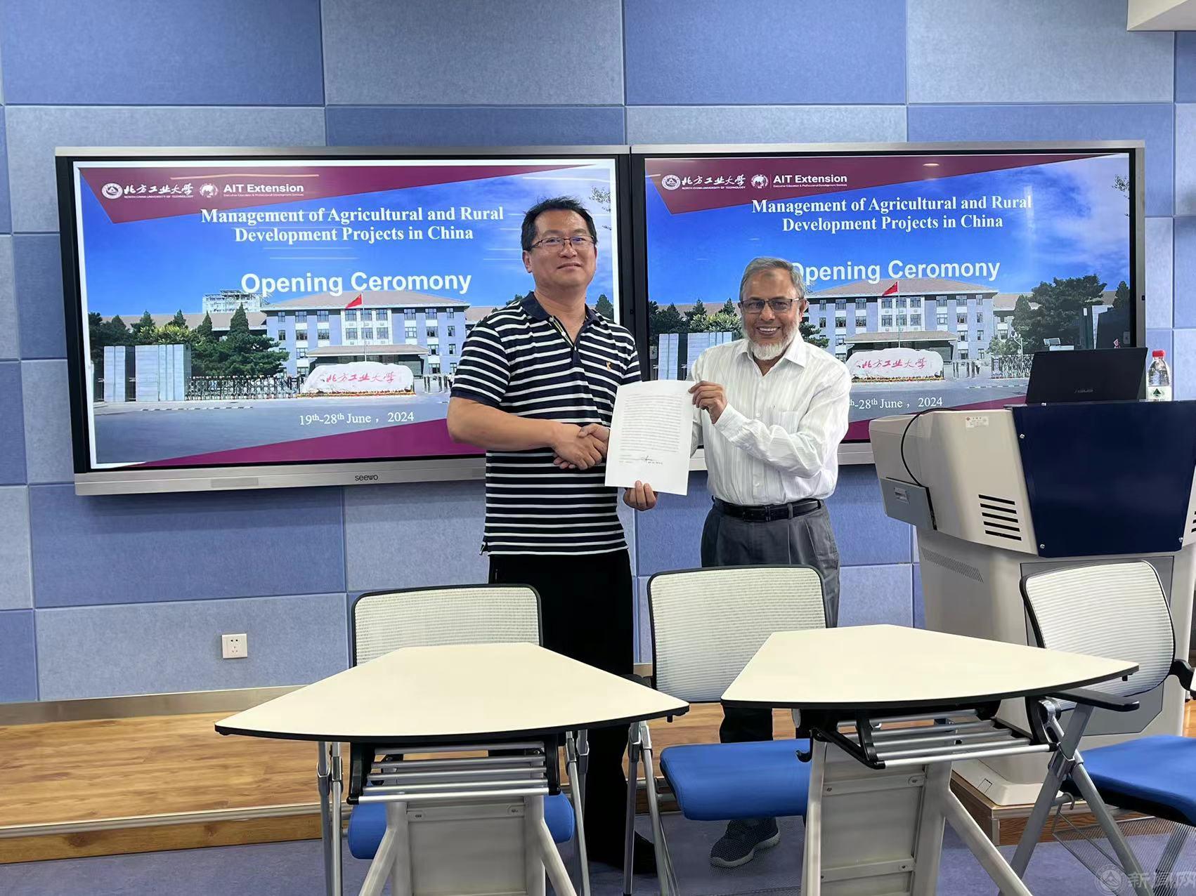 为积极响应北京“国际交往中心”建设,经BV伟德官方网站国际学院协调和推进,经济管理学院承接,继续教育学院协同,BV伟德官方网站与泰国亚洲理工学院携手开展的“中国农业与农村发展培训项目(Management of Agricultural and Rural Development Projects in China)”于2024年6月19日启动。开班仪式由经济管理学院教师白小伟博士主持,经济管理学院院长赵继新教授、国际学院副院长宋伟教授出席了开班仪式。