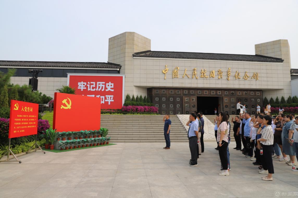 在抗日战争纪念馆前,全体党员面向党旗整齐列队,庄严举起右手重温入党誓词,铮铮誓言表达着对党的无限忠诚和崇高敬意,激励着全体党员不忘初心,牢记使命,坚定不移听党话、跟党走。