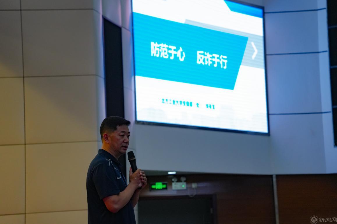 刘有宝老师结合其自身工作经历和有关高校近年来发生的大学生安全事故案例,向新生讲授了什么是电信诈骗、常见的以大学生为对象的电信诈骗手法、怎样预防电信诈骗等内容。介绍了校园电信诈骗常见类型,深度剖析被诈骗的心理路程,揭秘诈骗分子的各种套路,告诫同学们不要有任何侥幸心理,增强反诈意识,提高反诈能力。刘有宝老师提醒同学们,对电信诈骗要时刻保持警惕,保护好自己的个人信息;要牢记电信诈骗的常见手段,用好“国家反诈中心”APP,保护好自己的个人财产。刘有宝老师强调,面对电信诈骗,同学们要牢记天上不会掉馅饼,“馅饼”后面是陷阱的道理,拒绝刷单等违法行为,不相信快速致富等常见的传销骗人手段,遵守校纪校规,多学习防诈反诈与防范传销的有关知识。希望大家一起携手筑牢校园防诈反诈与防范传销的防线。讲座得到了同学们的热烈反响。