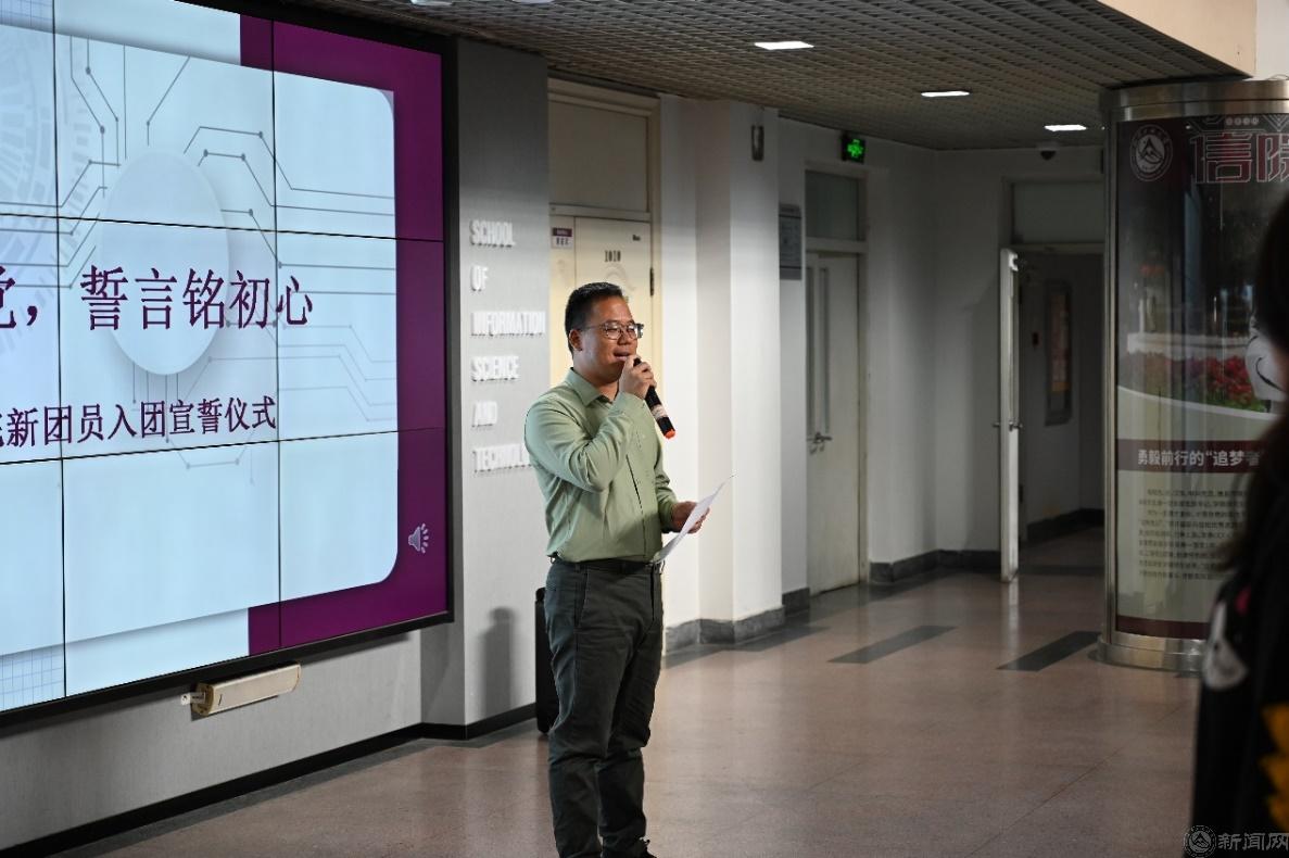 金秋十月,桂子飘香。10月12日中午,信息学院在瀚学楼十层大厅举行2024年新团员入团宣誓仪式。信息学院党委副书记陈卫、学院团委书记杨和家、150余名新老团员代表参加活动。