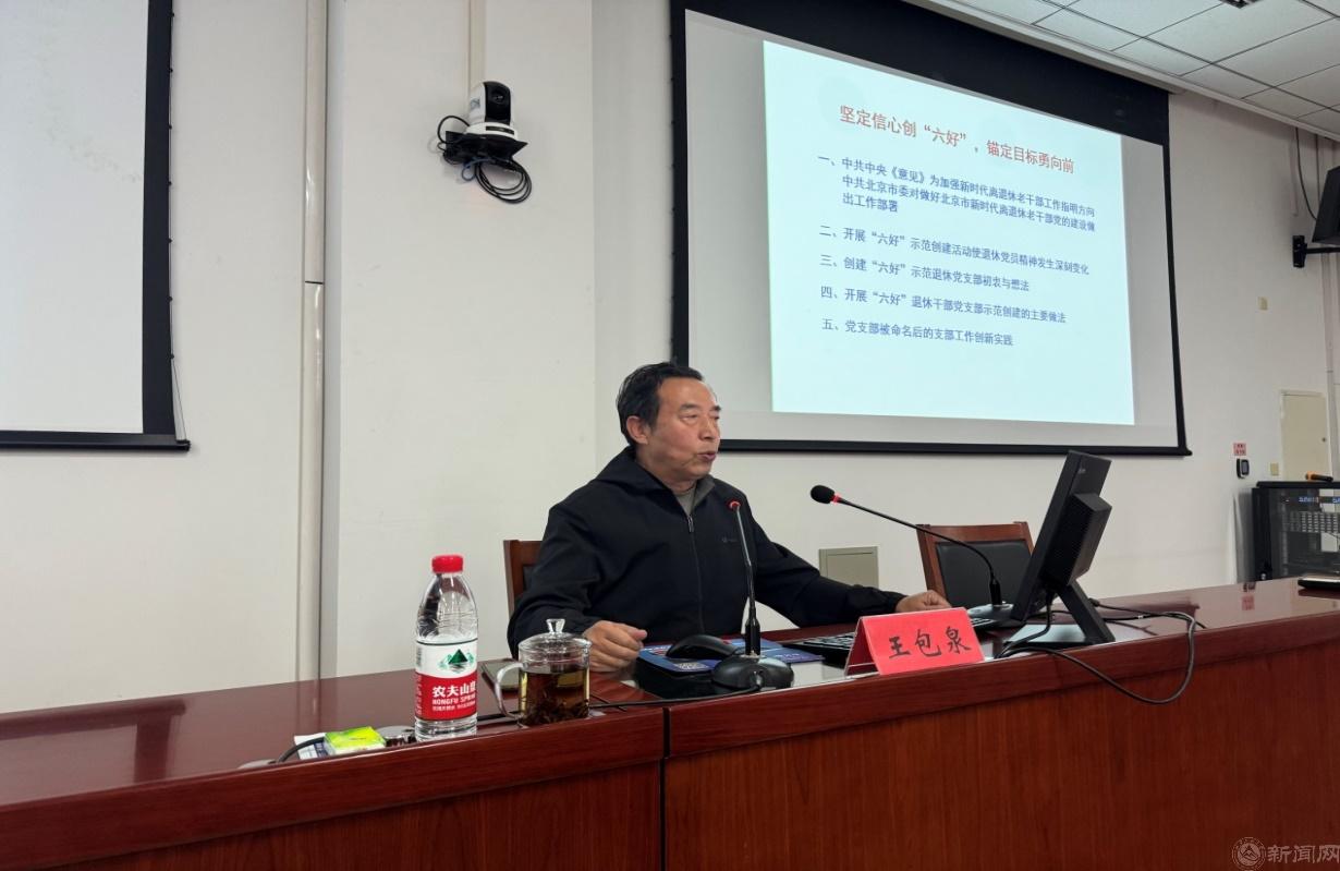 10月31日下午,受北京市委老干部局和市委教育工委离退休干部处委托,伟德官网第一退休教职工党支部书记王包泉到水利部机关离退休干部培训班,围绕“争创‘六好’离退休干部党支部”交流经验做法。