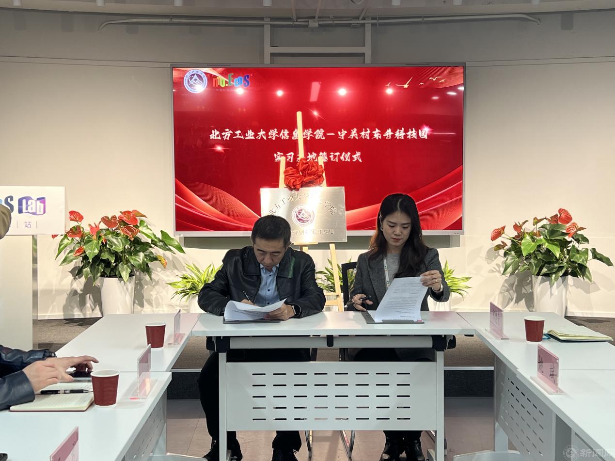 为了加强校企合作,深化产教融合,推动校企协同发展。11月11日,信息学院与中关村东升科技园达成学生就业创业实习研究基地合作协议,并在北京市海淀区中关村东升科技园举行了揭牌仪式。信息学院院长马礼、计算机系主任李源、人工智能系主任赵卓峰、辅导员魏静、田庆玥受邀参加活动。东升大厦i站科创服务总经理刘雨晨、产业孵化总经理姚斌等园区领导、北京超智能科科技有限公司负责人杨建刚参加签约揭牌仪式。
