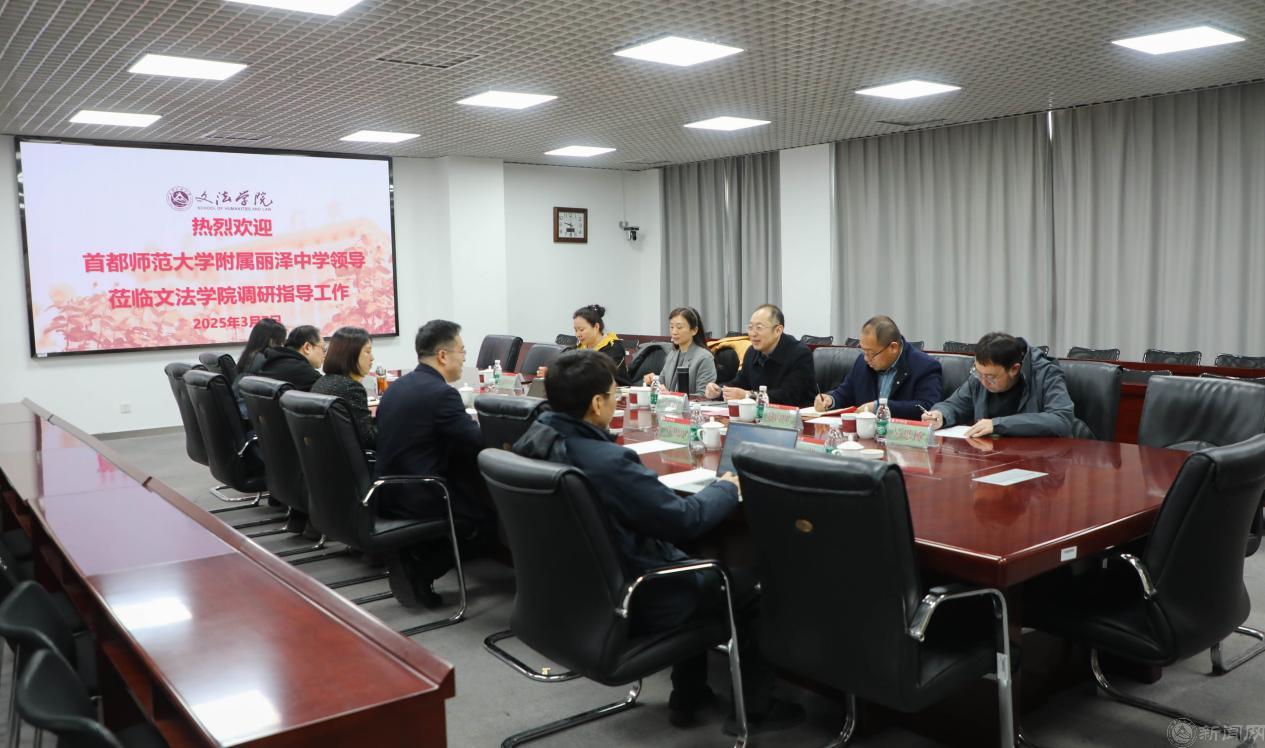 3月7日上午,文法学院与首都师范大学附属丽泽中学开展“党建引领、校际合作:大、中学携手育英才”联合党日活动,丽泽中学党委书记郝玉伟、校长赵海旺等一行5人,文法学院党委书记袁凤识、法律系主任乔慧娟等教师参加了活动,活动旨在加强校际合作,推动教育协同发展,为中学与高校之间的教育衔接搭建桥梁。