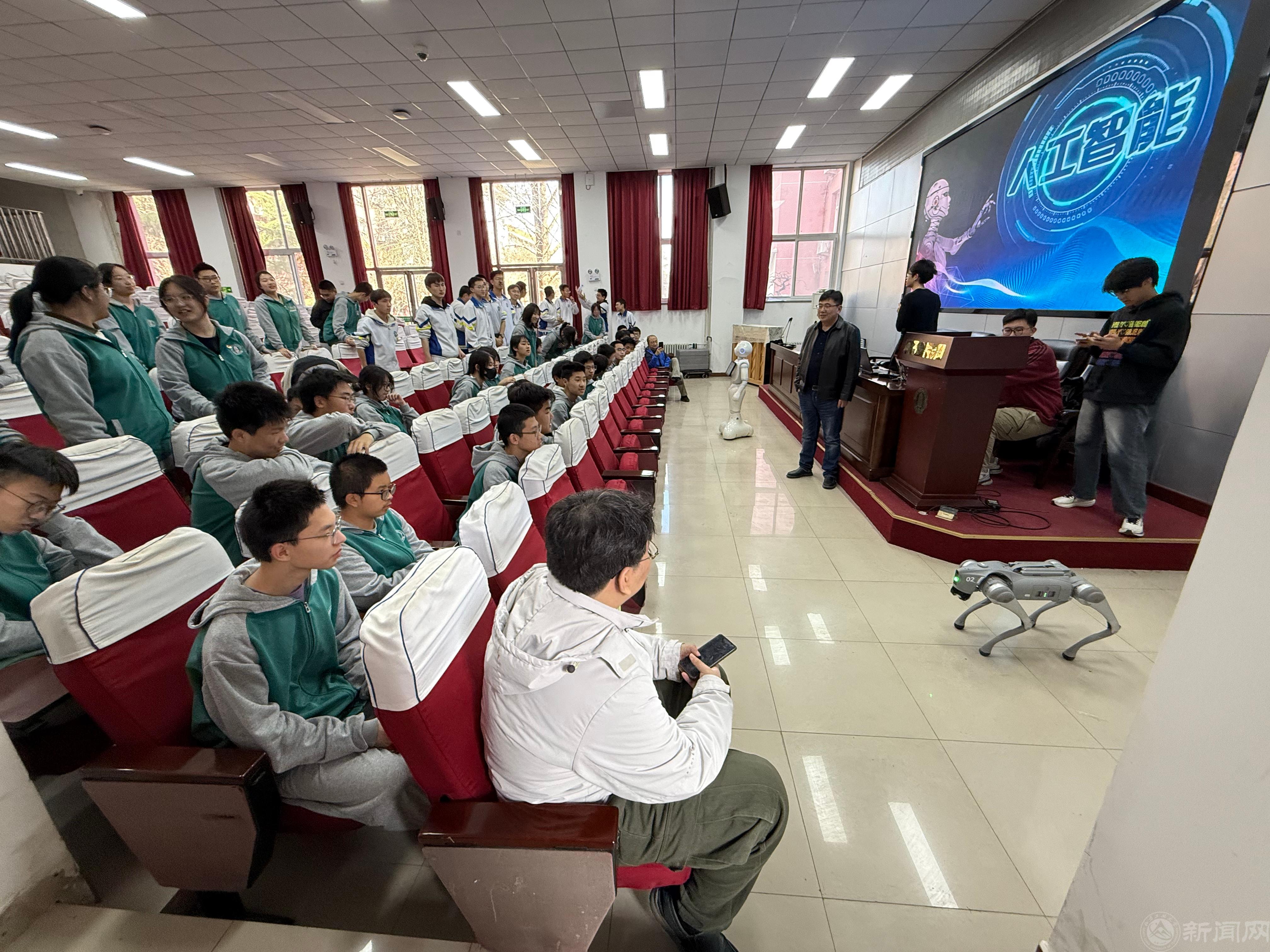 活动中,由智能机器人“小毓”作为“宣讲员”,向北京市第十中学高中部的同学们介绍了BV伟德官方网站办学历史、办学特色、招生政策以及信息学院及人工智能专业情况,并为同学们做了人工智能的科普报告。之后“小毓”还表演了舞蹈、开放式对话及“AI猜年龄”等才艺。随后,还为同学们演示了“四足机器狗”这款新颖的“科技萌宠”。智能机器人“小毓”及机器狗的诸多功能都由人工智能专业本科生研发,她可以通过基于计算机视觉的人脸检测技术猜出同学们的年龄,还可基于大模型与同学们进行幽默地问答和会话,可以通过手势控制机器狗做动作,这些都引发同学们阵阵惊叹,激起了同学们对智能技术的好奇心,并将活动气氛推向高潮。