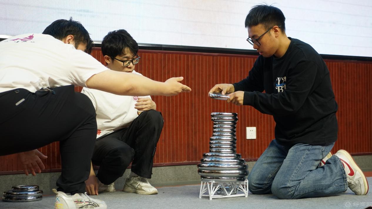本次承载力大赛要求使用A4打印纸、普通胶水等规定材料,综合运用理论力学、材料力学和结构力学等知识制作完成高度≥9cm、宽度≥8cm、长度(跨度)≥21cm、质量90g之内的桥梁结构,并对其进行力学分析和承重测试。大赛吸引了来自全校63支参赛队伍共计174名参赛选手,通过预赛产生了9组决赛队伍。决赛现场气氛热烈,经过团队作品展示和结构承重测试环节的激烈角逐,最终王瑞、马尔瀚和夏子贺小组的作品以承重44kg、综合评分排名第一的成绩荣获冠军。