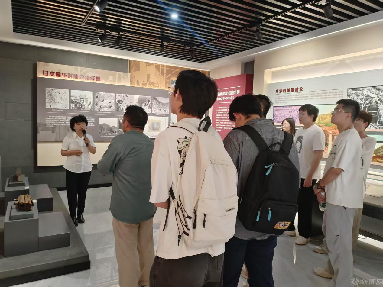 在丰沙线陆地协作展览馆,同学们深入了解了这条连接北京丰台与河北怀来的铁路大通道的修建历程。图文资料直观呈现了铁道兵在高山峡谷间与洪水、风沙等自然灾难顽强抗争的故事,其“一不怕苦、二不怕死”的钢铁意志让同学们深受震撼。在“23・7”抗洪救灾纪实展中,安家庄村党支部带领群众在特大暴雨中团结安置滞留旅客、开展灾后重建的感人事迹,更让大家看到红色精神在新时代的延续——从抗战时期的武装斗争到和平年代的救灾抢险,不变的是 “人民至上”的初心坚守。