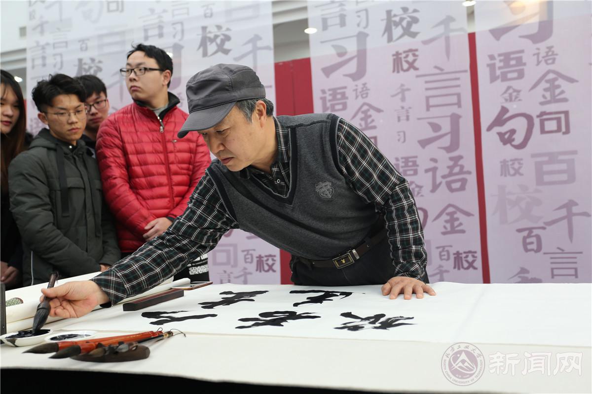 在开幕式上学校教师书画协会会长吴润衡老师献上了自己的墨宝。“人生若逆旅,天道酬若心”,在献上墨宝的同时,吴老师也给在场的同学们上了生动一课。
