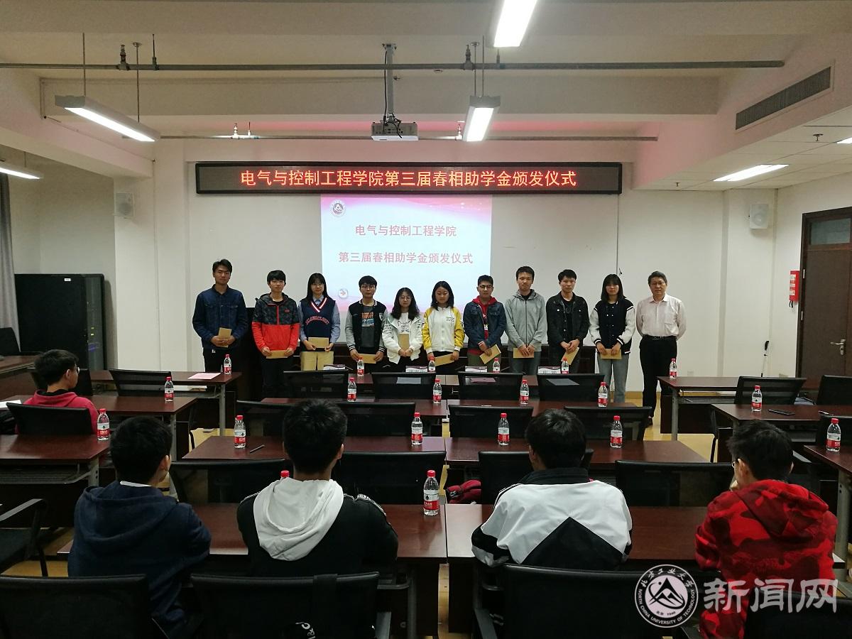 4月24日,电气与控制工程学院在博远楼452举行第三届春相助学金颁发仪式。学院院长王力、特别代表武家申、辅导员库颖及获助的20名学生参加仪式。仪式由院党委副书记史宁主持。