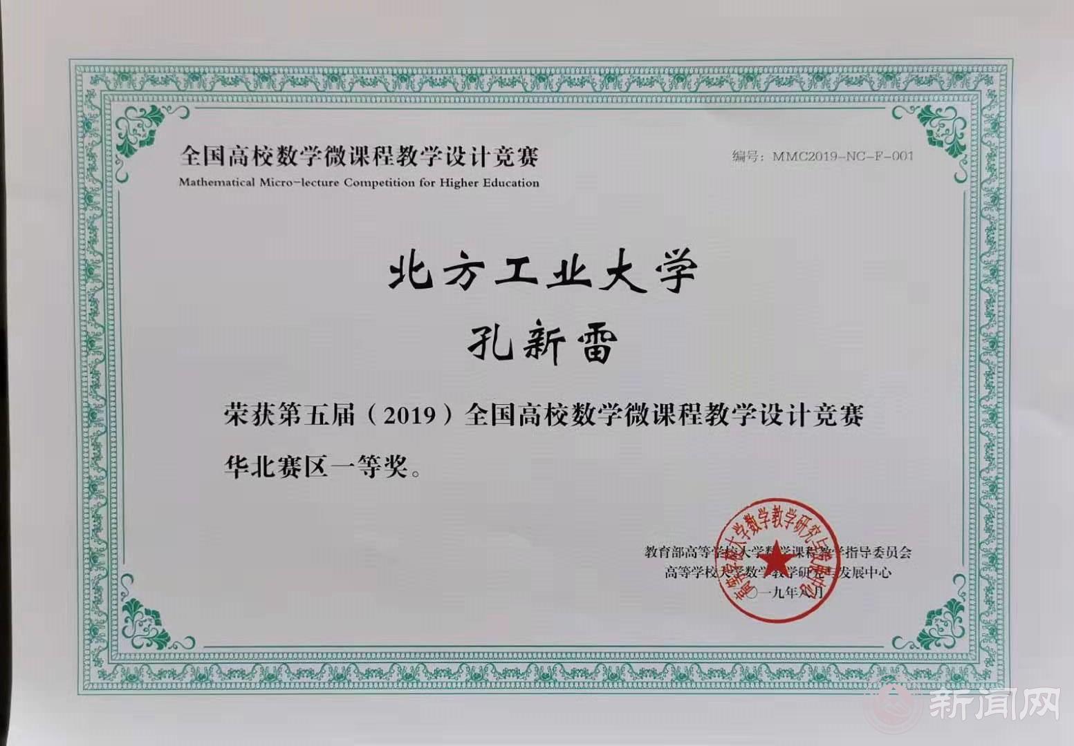 日前,第五届(2019)全国高校数学微课程教学设计竞赛北京赛区和华北赛区评选结果揭晓,伟德官网理学院数学系孔新雷老师先后获得北京赛区一等奖和华北赛区一等奖,并受邀参加在天津举行的颁奖会。