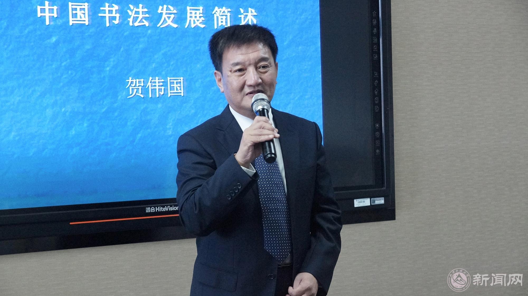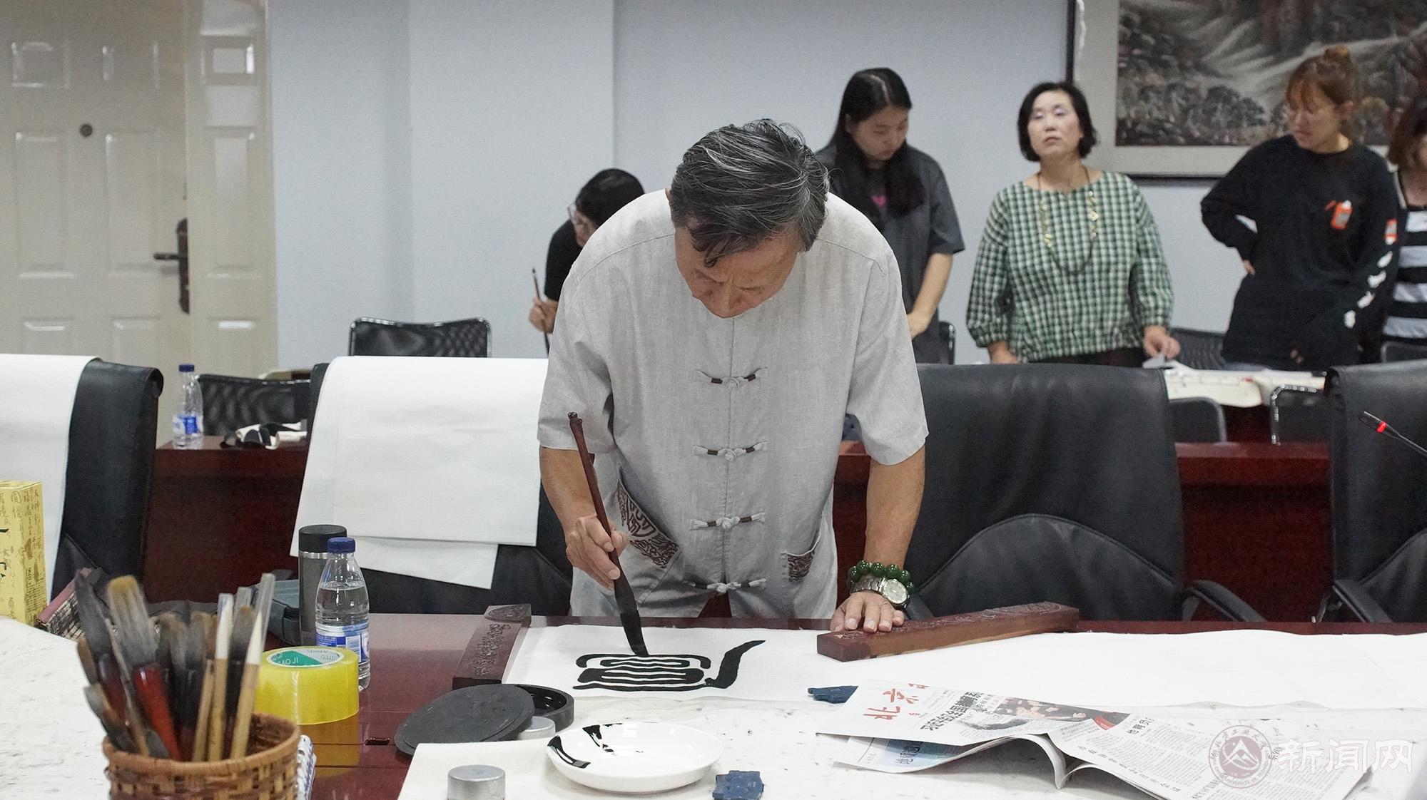 交流活动由文法学院中文系主任王德岩主持,日语系梁长岁老师担任翻译。国家大学生素质教育基地、文法学院领导及师生,校书画协会,贺良朴艺术研究会贺伟国会长及部分学员,与全日本书艺学院访华团一行17人进行了学术和艺术交流。日方代表介绍了日本书法和书法教育的历史沿革及现实发展,展示了日本当代书法作品。贺伟国会长做了《中国书法发展略述》的精彩讲座并进行了生动的现场书法教学。