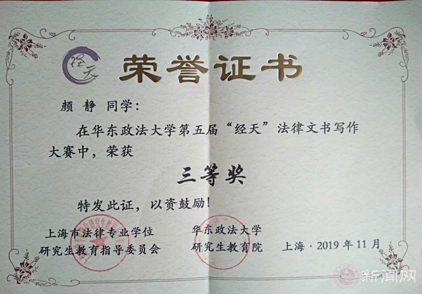 伟德官网2019级法律硕士研究生颜静在第五届“经天杯”法律文书竞赛中,充分展现法学学子的精神风貌和专业素养,过关斩将,从599位选手中脱颖而出,跻身前六强,荣获三等奖。