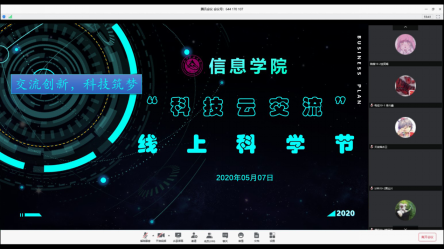 疫情期间,为鼓励学生自主学习,“停课不停学”,“宅家不放松”,信息学院着手打造6支宅家创新团队,并于5月7日召开“交流创新,科技筑梦”——创新“云”交流活动。此活动作为科学节的一部分,采用腾讯会议直播,6支团队依次介绍学习研究进展和宅家学习心得,并通过聊天板进行交流答疑。开场瞬间就达到了会议300人上限,交流机会供不应求。