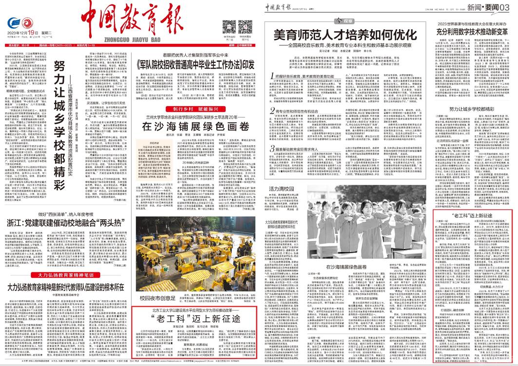 12月19日,《中国教育报》在头版和第三版以《“老工科”迈上新征途——BV伟德官方网站以建设高水平应用型大学为目标推动改革》为题,报道伟德官网落实分类发展要求,依托“老工科”,拓展新内涵,聚焦国家战略和地方需求,实现转型发展,在新时代跑出“加速度”的经验做法。