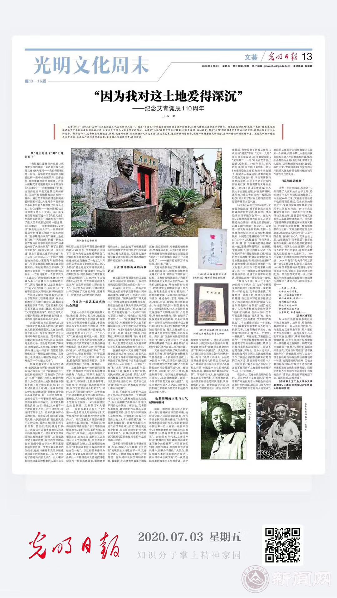 近日,伟德官网中文系冯雷副教授的文章《“因为我对这土地爱得深沉”——纪念艾青诞辰110周年》被“学习强国”转载。原文于2020年7月3日以整版的形式发表在《光明日报》上(https://epaper.gmw.cn/gmrb/html/2020-07/03/nbs.D110000gmrb_13.htm)。