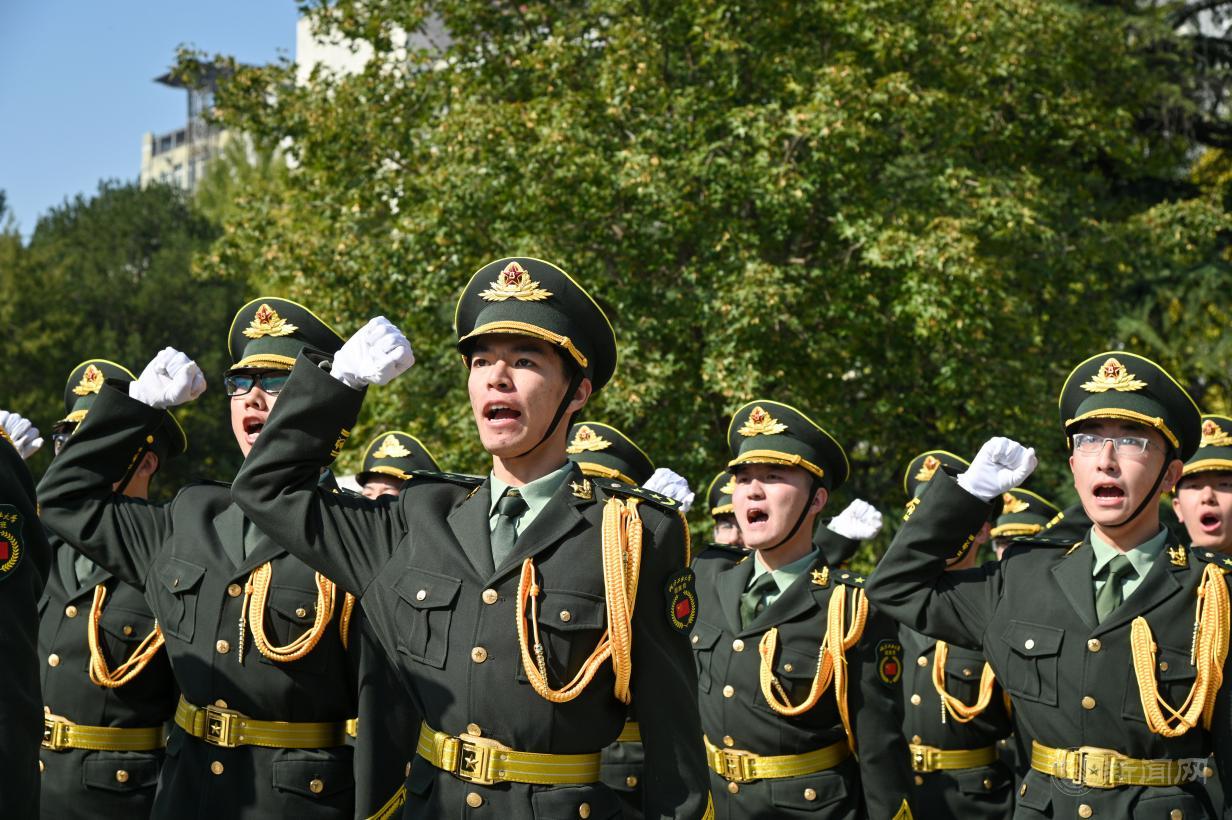 随后,新老队员进行了国旗交接,第五届国旗班53名新队员在国旗下庄严宣誓。“我志愿加入BV伟德官方网站国旗班,坚决服从命令,严格遵守纪律,热爱国旗,护卫国旗,敢于吃苦,甘于奉献,勇于坚持,决不退缩,以忠诚和担当捍卫国旗尊严,以爱国和奉献挥洒青春热血。”铮铮誓言展示出国旗班队员的初心使命和壮志豪情,也表达出了伟德官网学生浓浓的爱国情感。