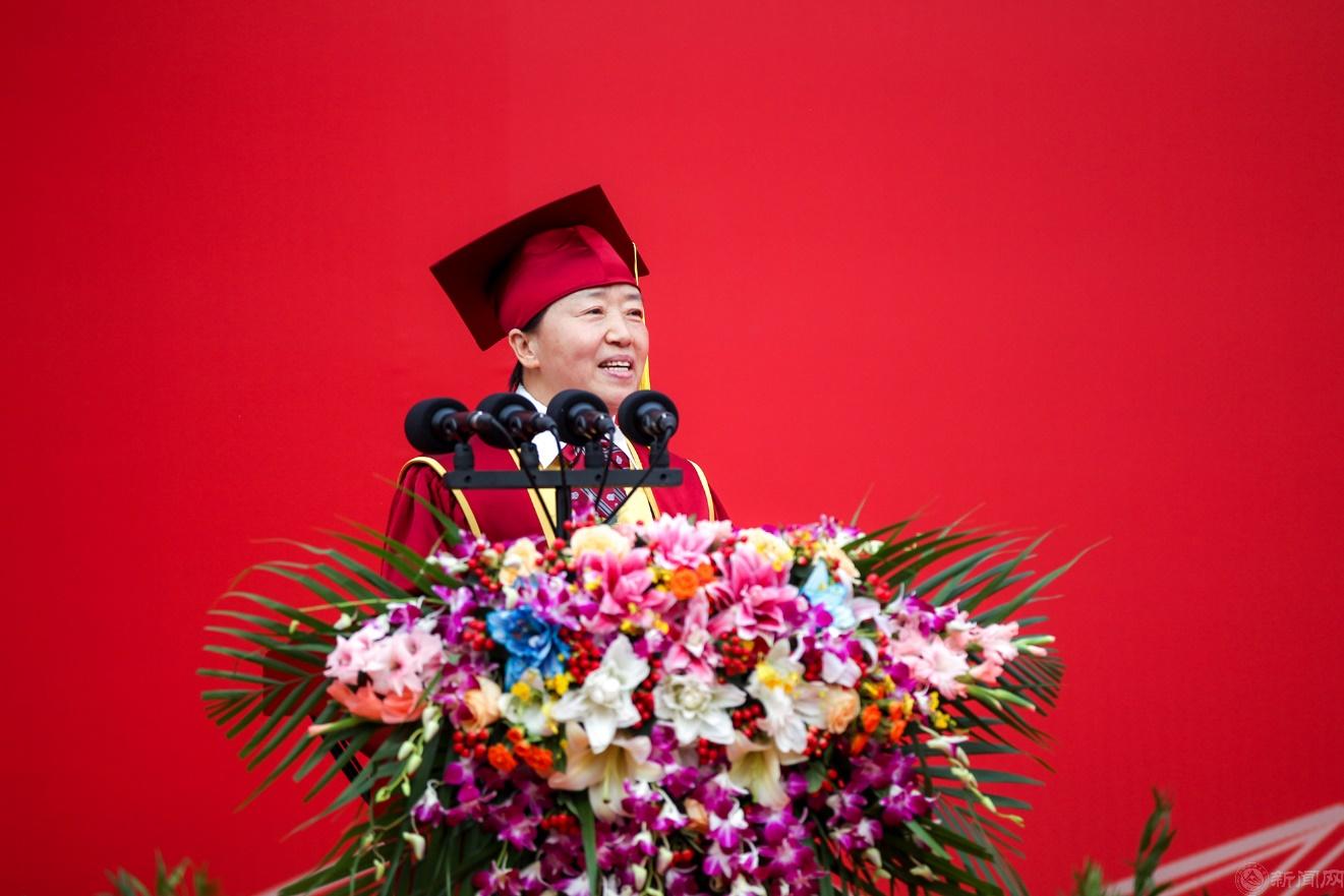 上午7点整,毕业典礼在升国旗、奏唱国歌中正式开始。校党委副书记田红芳主持大会。