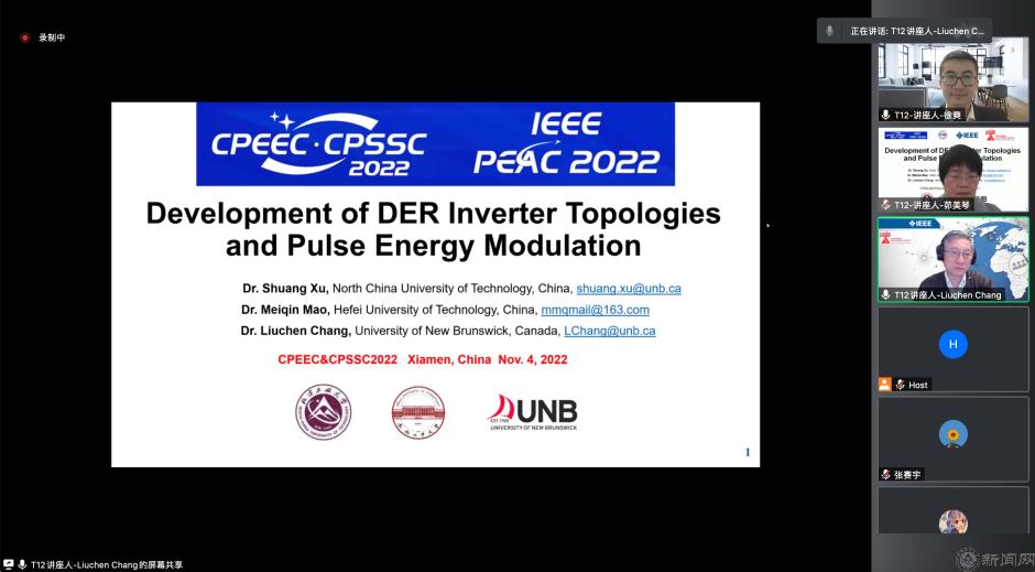 由中国电源学会主办的2022中国电力电子与能量转换大会暨中国电源学会第二十五届学术年会及展览会(CPEEC & CPSSC 2022)于2022年11月4日-7日在厦门召开,大会旨在促进电力电子、能量转换与电源技术相关领域学术、技术交流,促进产、学、研的合作,促进相关产业及产业链的技术创新和进步,为国内外专家学者分享领域内最新研究成果提供交流平台。伟德官网电气与控制工程学院徐爽博士受邀以BV伟德官方网站为第一单位,同加拿大皇家工程院院士张榴晨教授、合肥工业大学茆美琴教授一起,以“Development of DRE Inverter Topologies and Pulse Energy Modulation”为主题,做了时长为三个半小时的线上特邀大会报告。