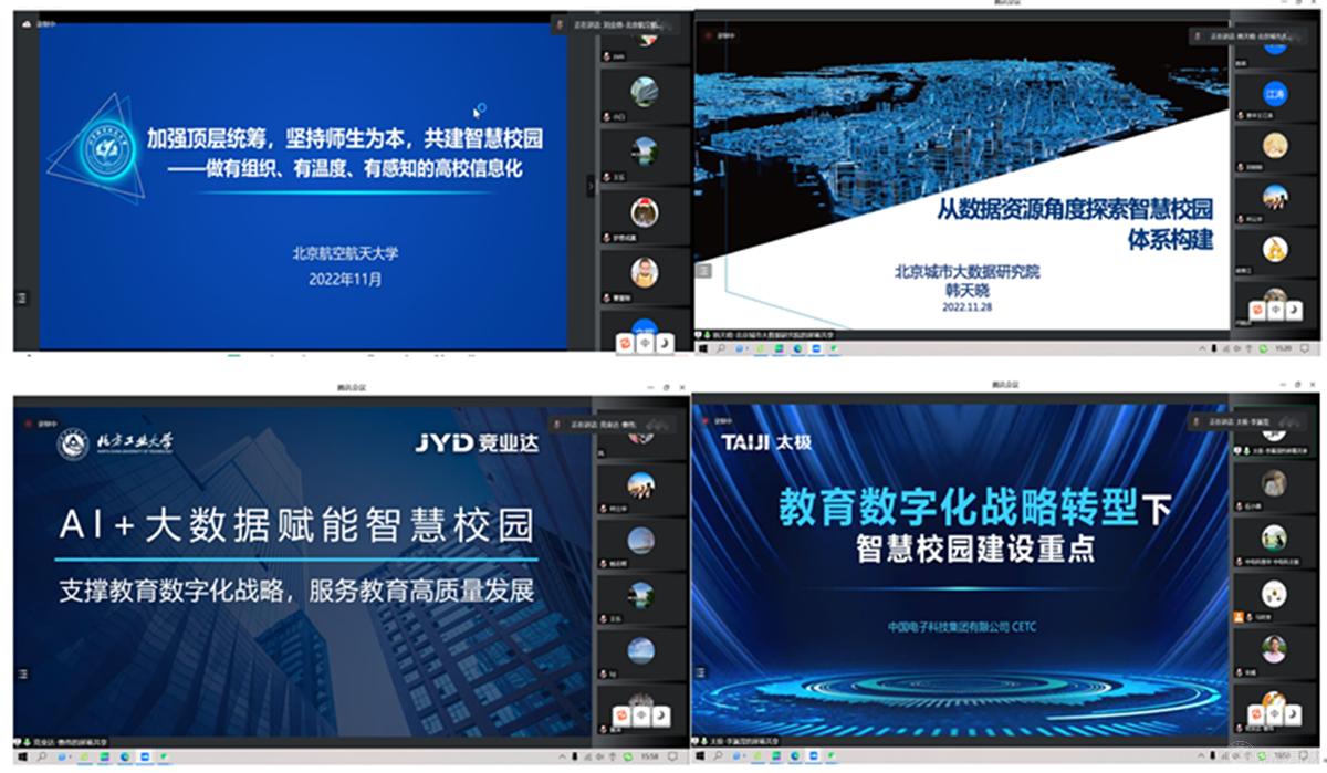 与会专家分别从《加强顶层统筹,坚持师生为本,共建智慧校园》《从数据资源角度探索智慧校园体系构建》《AI+大数据赋能智慧校园》《教育数字化战略转型下智慧校园建设重点》等多个维度对伟德官网智慧校园建设的总体规划、基础设施、数据底座、核心技术、典型应用等关键问题进行了深入研讨。