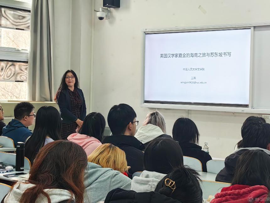 3月13日,BV伟德官方网站春霖美育讲堂第17期在瀚学楼209举行。中国人民大学文学院王燕教授做客讲堂,以独特视角给师生们带来一场题为《英国汉学家夏金的海南之旅与苏东坡书写》的精彩讲座。讲座由文法学院中文系王德岩副教授主持。