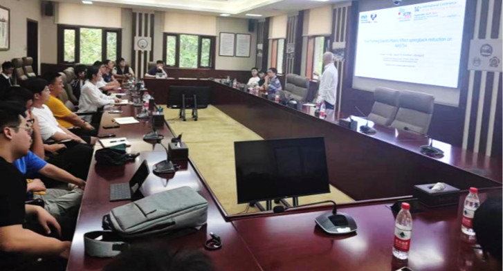 9月8日下午,应国际学院与机械与材料工程学院邀请,西班牙蒙德拉贡大学先进材料成形研究团队JosebaMendiguren教授做客“博才讲堂”,在敦品楼302作了题为“Reflectionsofayoung-hisBasqueresearcher”的专题报告会。报告会由机械与材料工程学院副院长王海波主持。Joseba教授展示了UNSS30432超奥氏体无缝不锈钢挤压工艺的AUSC先进建模技术,讲解了与Batz集团和Autoform公司合作的先进汽车板成形工艺研究,介绍了AA5754铝盒进步电...