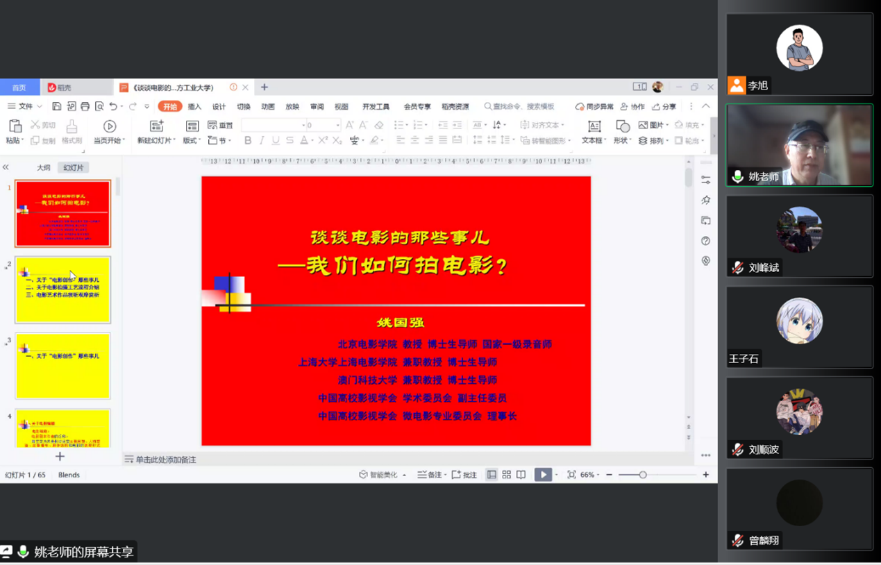 10月13日下午,新工科人文讲堂之“谈谈电影的那些事儿”顺利举办。本讲特邀北京电影学院教授、博士生导师姚国强主讲。机械与材料工程学院等学院160余名师生参加了本次讲座。机械与材料工程学院院长刘峰斌主持了讲座。在本次讲座中,姚国强教授从电影艺术、电影创作、电影拍摄等三方面讲述了中外电影的起源与发展。通过欣赏电影片段,向同学们解析了电影作品的类别及影片内容。姚教授还介绍了电影现场的具体拍摄过程、创作方法以...