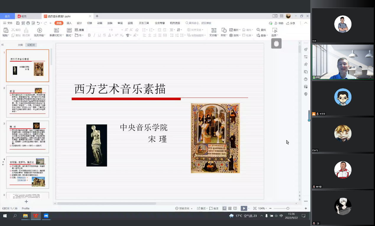 9月22日下午,新工科人文讲堂本学期第三讲——“西方音乐艺术素描”顺利举办。本讲特邀中央音乐学院音乐系教授、博士生导师宋瑾主讲。机械与材料工程学院等学院180余名师生参加了本次讲座。机械与材料工程学院党委书记王文革主持了讲座。在本次讲座中,宋瑾教授以西方音乐发展历史为脉络,简要介绍了古希腊罗马、中世纪、文艺复兴、巴洛克、古典主义、浪漫主义、现代主义、后现代主义等不同时期不同流派的音乐特点。宋瑾教授引...